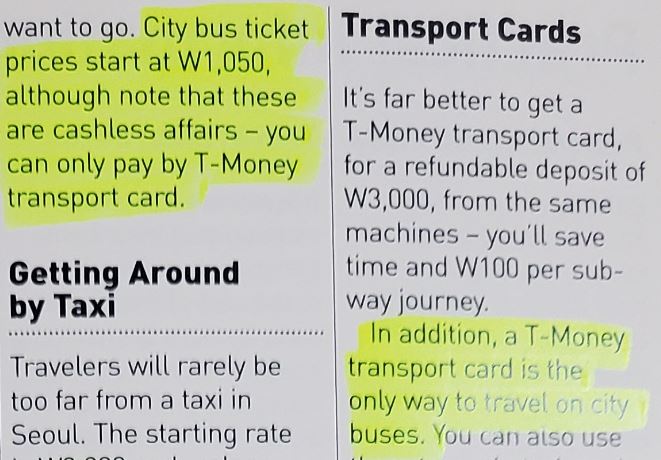In addition, a T-Money transport card is the only way to travel on city buses.
